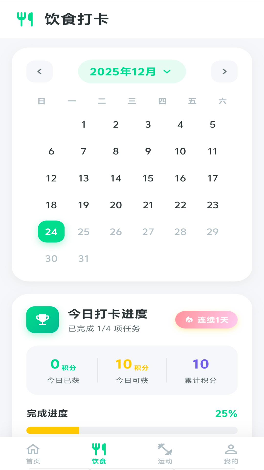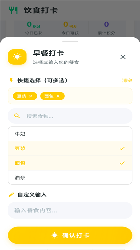 2、可以进行每日饮食打卡,还有吃药打卡功能;