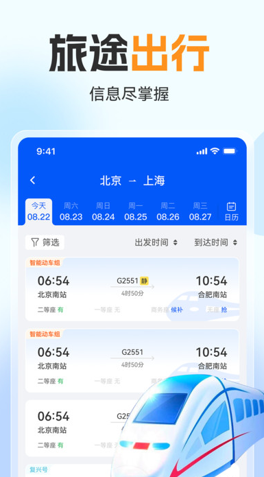 3、支持车次筛选功能,用户可根据出发时段、运行时长、车次类型等维度精准筛选。