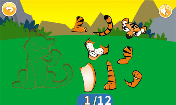 形态匹配:通过拖拽动物剪影至对应轮廓,帮助孩子识别动物外形特征,如长颈鹿的长脖子、大象的扇形耳朵等。