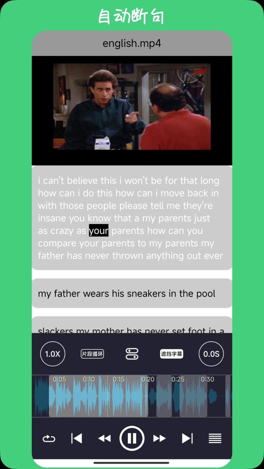 听力多种模式:片段复听、单句复听、听写模式、测试模式、全屏模式;