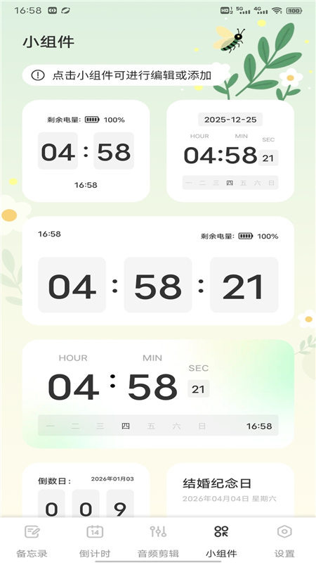 3、支持设置重要的纪念日或事件,随时开启倒计时功能。