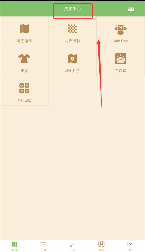 1 、进入应用后首先看到的是布局合理的功能界面,顶部以绿色条带突出显示应用名称,下部将地图种子、资源等常用功能以直观的图标阵列形式呈现,确保重要操作能快速启动。