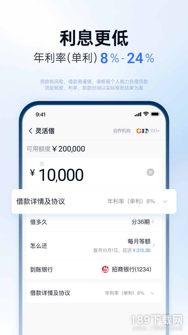 2、进入页面查看额度,即可借款