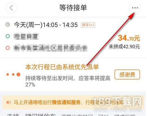 3、点击等待接单对话框后,页面跳转,点击页面右上角的三个点。