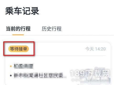 2、点击待处理订单后,进入乘车记录界面,点击等待接单对话框。