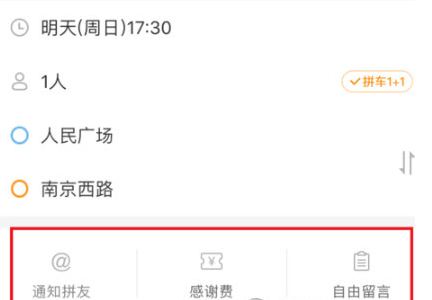 3、这样基本上就差不多了,最后是可选项,可以选择@自己认识的拼友、加感谢费或者给车主留言;