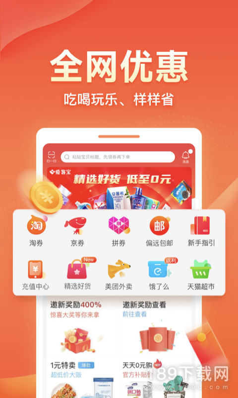 5、购物前先领券,不花冤枉钱!网购节省至80%