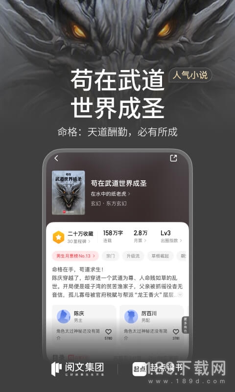 2、起点出品——起点中文网携百万签约作者诚挚出品,日更4000万字正版文学,期待与你相遇~
