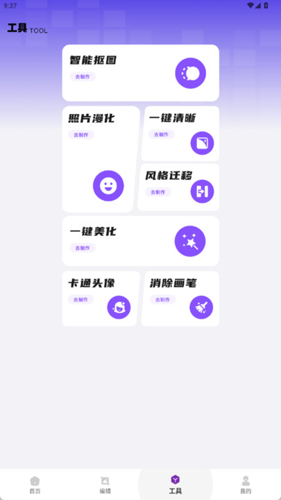 1、应用利用人工智能技术,提供智能、高效、高质量的自动化图片编辑体验。