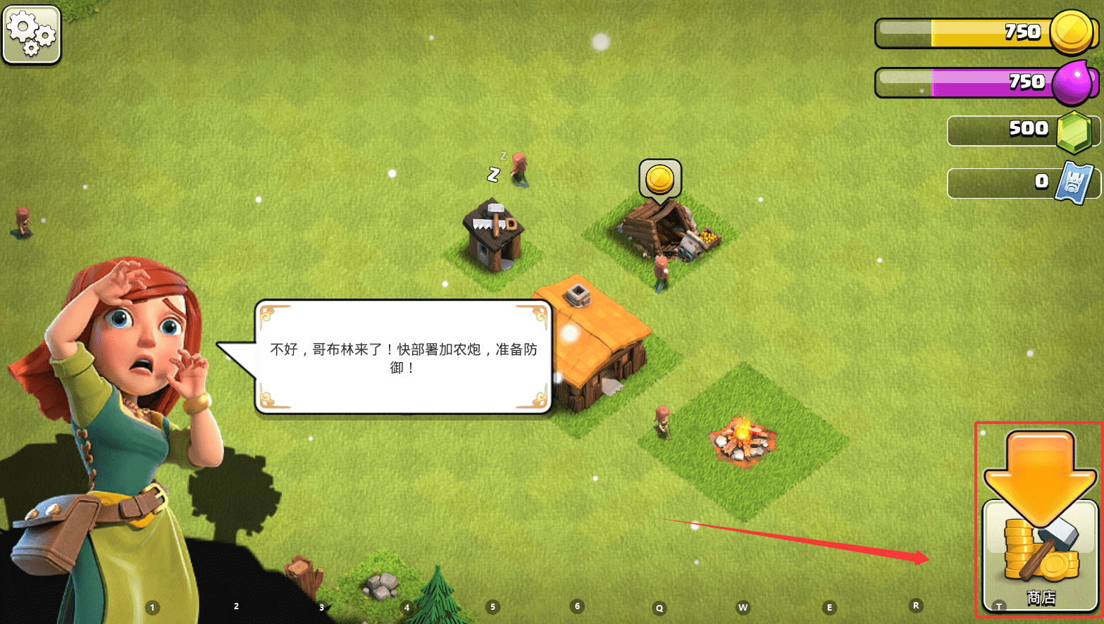 2、遇到敌人来袭时,比如提示“不好,哥布林来了!快部署加农炮,准备防御”。