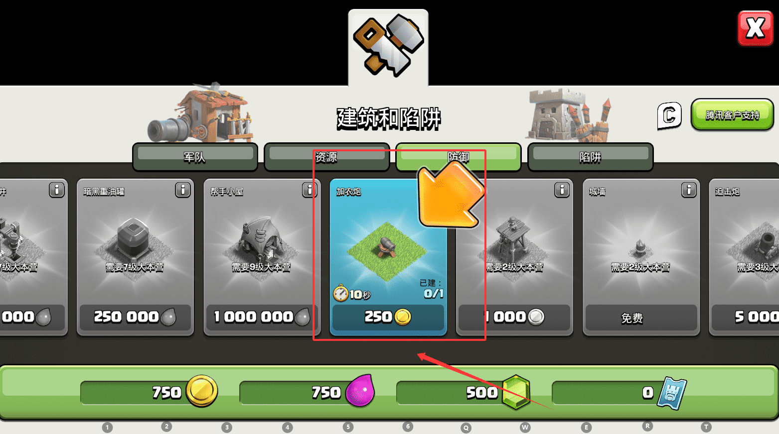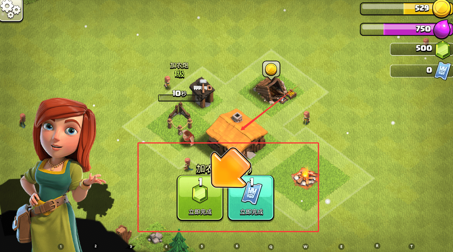 4、升级或建造时会出现倒计时,比如“加衣起 10秒”,你可以使用宝石立即完成。