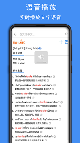 语音输入查询:通过麦克风输入泰语或中文语音,系统自动转换为文字并展示翻译结果,省去手动输入步骤。