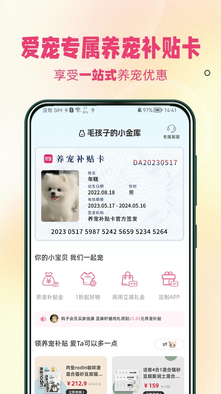 6、并且宠饭还提供了养宠补贴和个性化购物平台等贴心设计,让用户在养宠和购物过程中更加轻松和愉快。