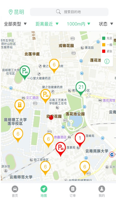 2、实时展示附近停车场和剩余车位,让车主及时掌握信息;