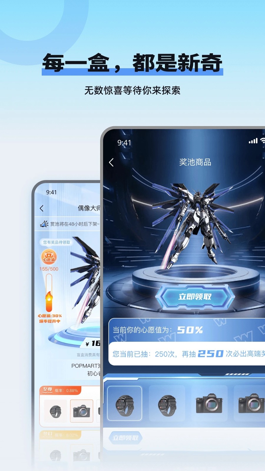 用户可以对各种盲盒进行进阶,可以得到更优质的盲盒商品;