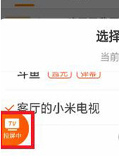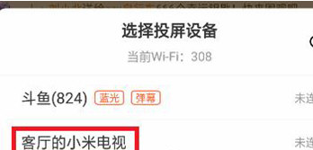 3、当我们点击该功能后,我们的屏幕下方则会出现相应的可投屏设备,我们现在需要找到我们的电视设备名称,并点击。