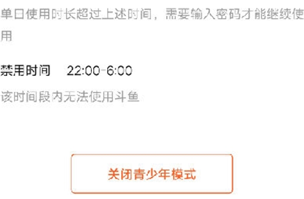 2、该模式将会限制青少年只能每天使用斗鱼APP40分钟,而且在22点到6点之间是无法正常使用的,如果我们想要进行关闭,就需要点击屏幕下方的“关闭青少年模式”按钮。