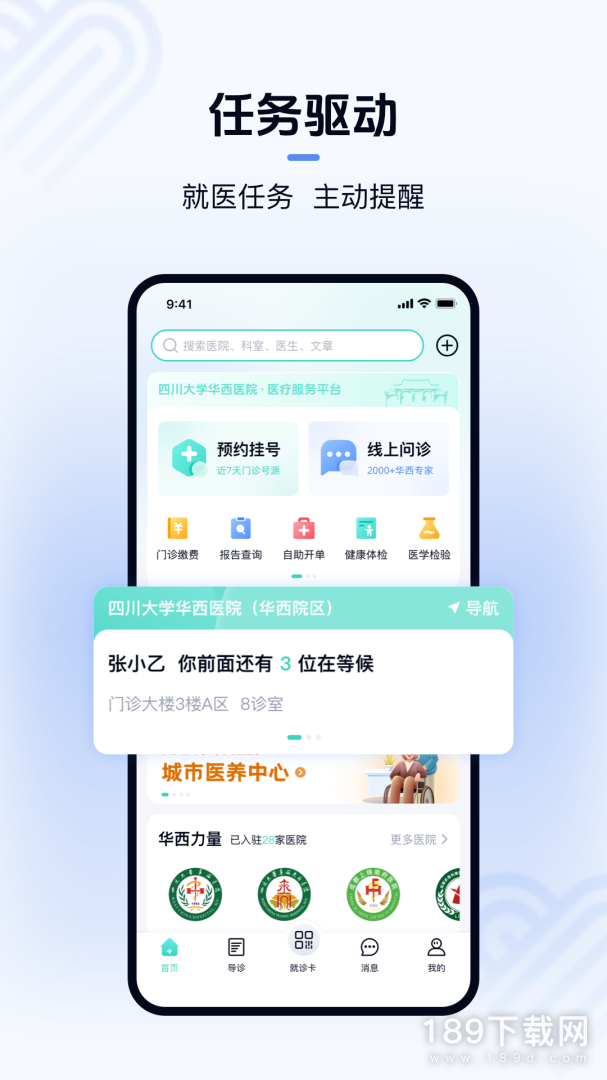 2、《华医通》是一款由四川大学华西医院推出官方app应用。华医通不仅有预约挂号、号源查询、候诊查询等功能,还开通了门诊缴费功能,以后挂号、取号、门诊缴费都可以跟排队说bye