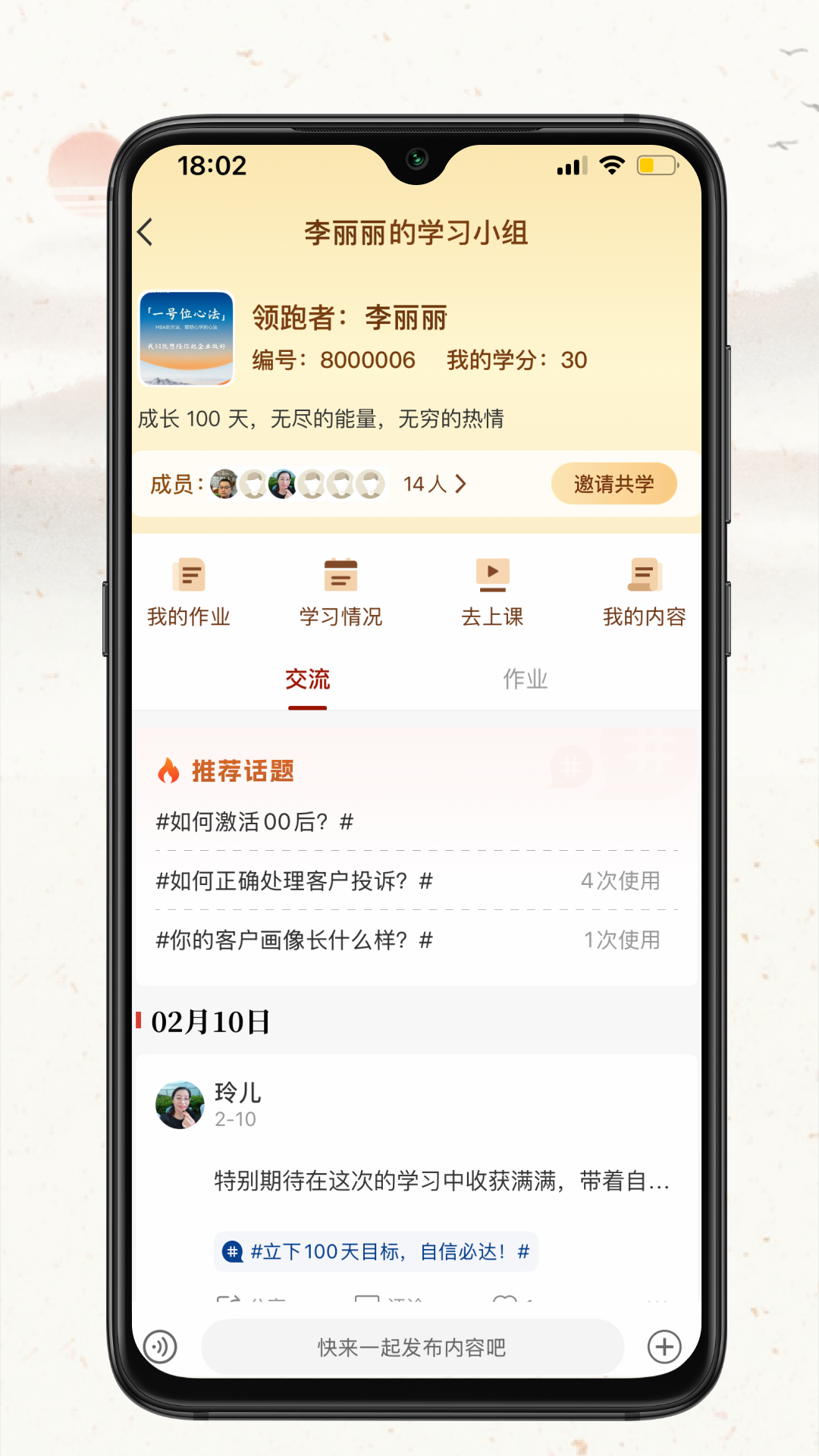 3、高管领导力:本课程是面向中小企业高管量身定制的一门专注于领导力的课程,已经陪伴近500位中小企业高管实现了个人和团队的成长。本门课程采用线下集中学习与线上双周辅导的形式,向上,帮助高管实现与董事长战略同频,并肩共行;向下,与下属、团队使命共担、荣耀同行。5天集中学习,道可顿悟;6次双周辅导,德需渐修。汲取中华经典智慧,切磋成长练习法,看清方向,突围破局。