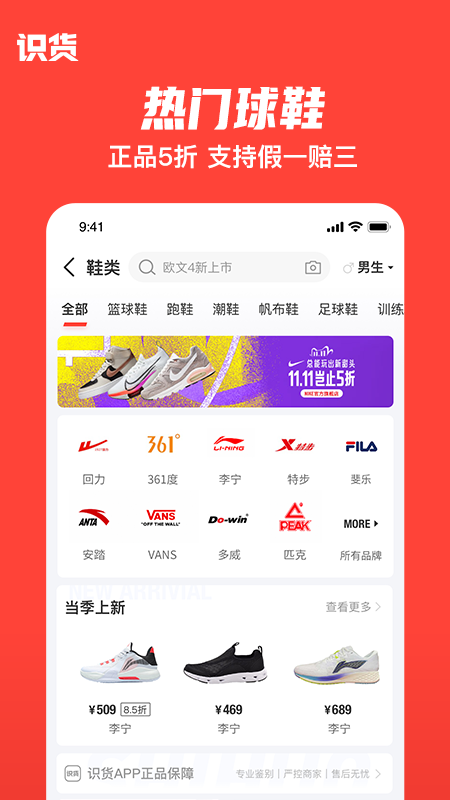 识货是一款深受潮流爱好者信赖的购物软件,是大家在进行网购运动潮流正品时候的首选。它不仅整合了Nike、Adidas等大牌的丰富商品,还提供了专业的鉴别服务,确保大家每一次购物都能够买到最纯正的真品。识货拥有着非常专业的九项专业质检,大家不必为可能买到假货而担忧,除此之外,这里还拥有着非常详细的鞋款百科,能够帮助大家非常轻松的锁定自己心仪已久的鞋型和配色,还有每日限时折扣,让学生党也能享受到大牌带来的乐趣。