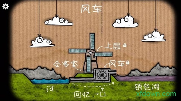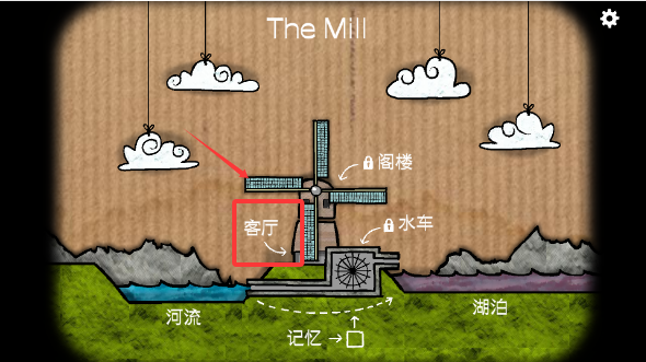 1、游戏初始置身于1971年的锈湖磨坊,首要任务是在简笔画风格场景中收集柴火与火柴等基础道具,通过点击屏幕边缘的黑色三角切换观察视角,发现隐藏在天花板隔层的钥匙。