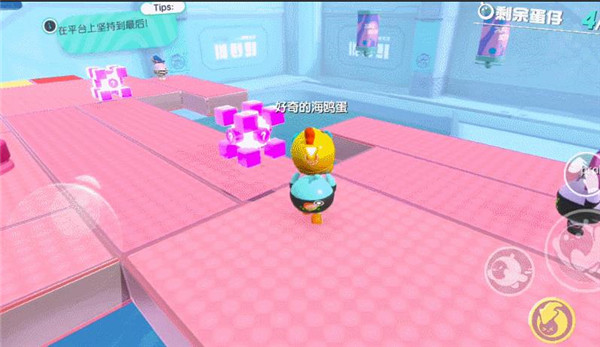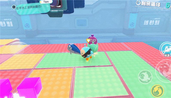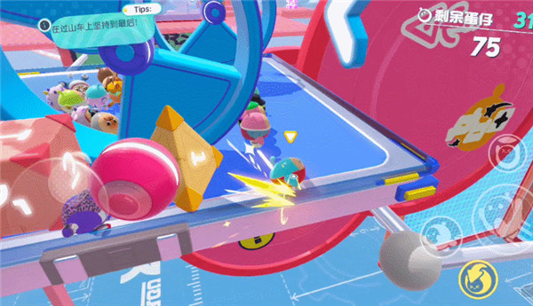 在没有道具的时候把人举起丢出则是我们唯一的进攻手段,可以蹲在一旁假装玩耍,然后等待时机,出其不意暴起发难,也可以见蛋就举,营造恐慌。但是生存赛中危机四伏,切勿在机关到来时还冒然进攻,最最导致双双淘汰,把胜利拱手让人哦~