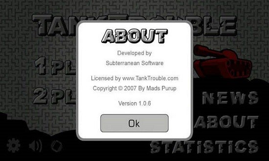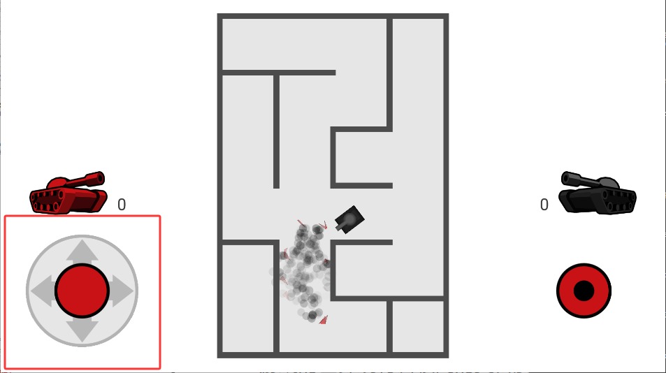 坦克动荡(TankTrouble)是简约的坦克对战游戏,可以单人,也可以双人对战。游戏的地图很简约,在一个小迷宫(已经算不上迷宫了)里,朝着对方开炮即可。不过需要注意一点,墙壁是可以反弹子弹的,千万要选好角度,要不然会自杀的。还可以一下子发出多发子弹哦。