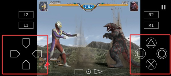 4、通过滑动屏幕左侧区域来控制奥特曼的移动方向,点击右侧按钮则能让奥特曼发动攻击,以此和出现的怪兽展开对战。