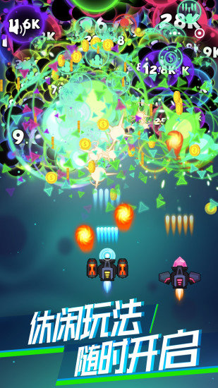 4、进入游戏后,通过滑动屏幕控制飞机移动,并自动或手动射击出现的病毒目标。躲避敌方攻击的同时尽可能消灭更多病毒。