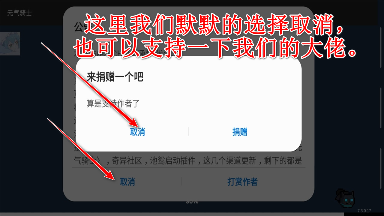 11.等一下会,游戏就会自动载入,这里我们默默的选择取消,也可以支持一下我们的大佬。