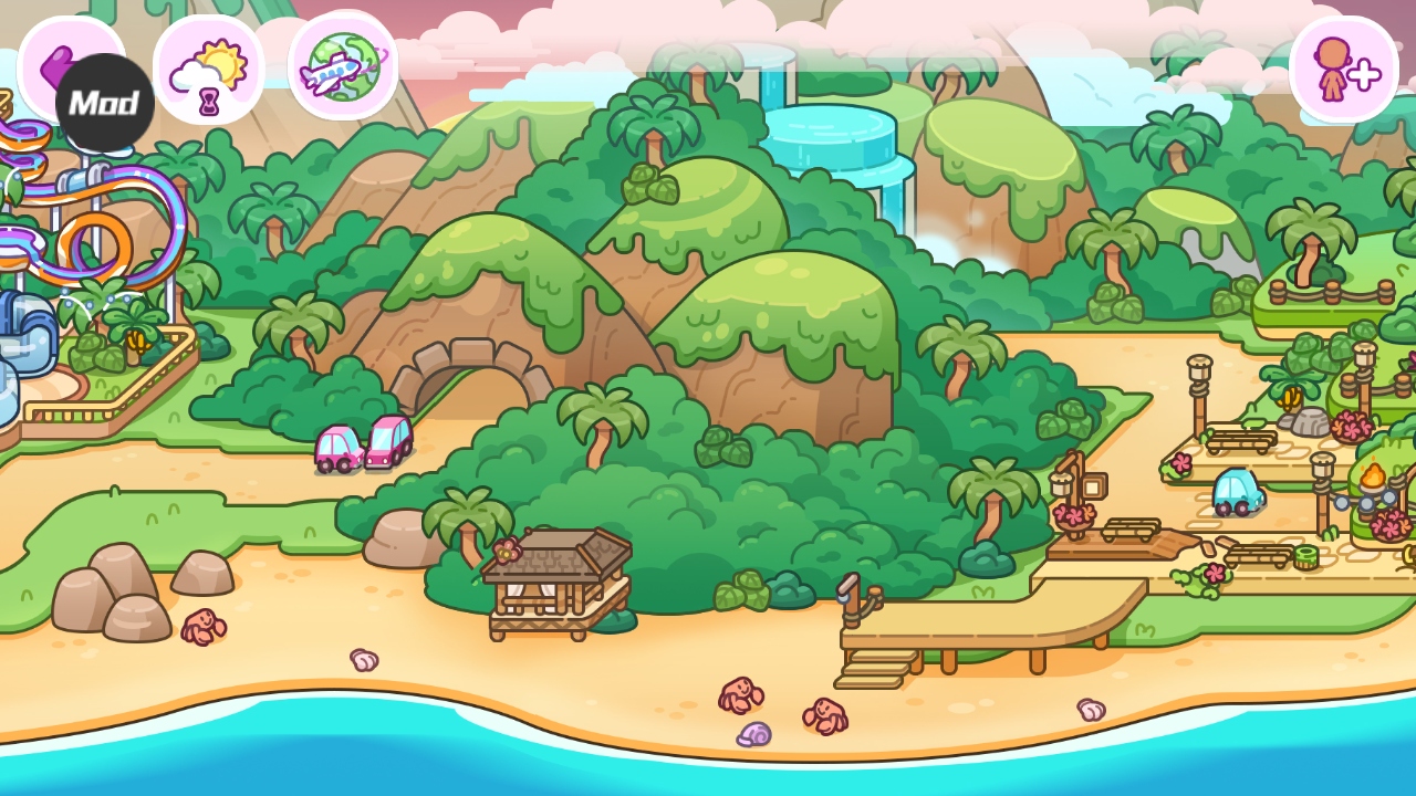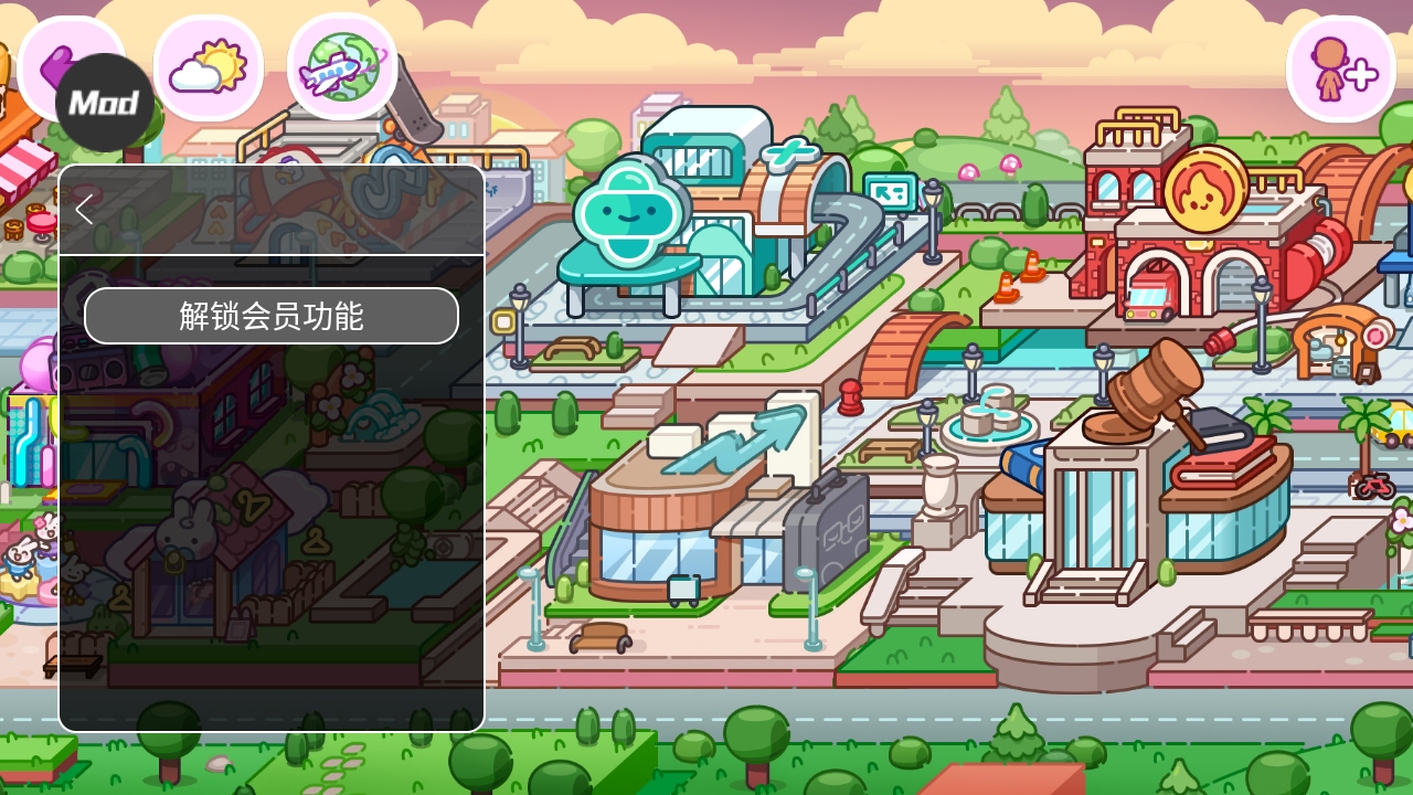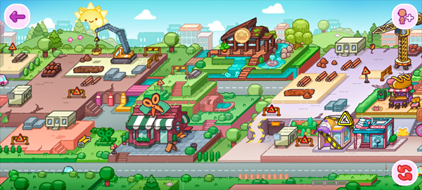 进入游戏后,可以看见很多建筑,比如像这个剪刀的,是个理发店,点击进去就可以玩啦