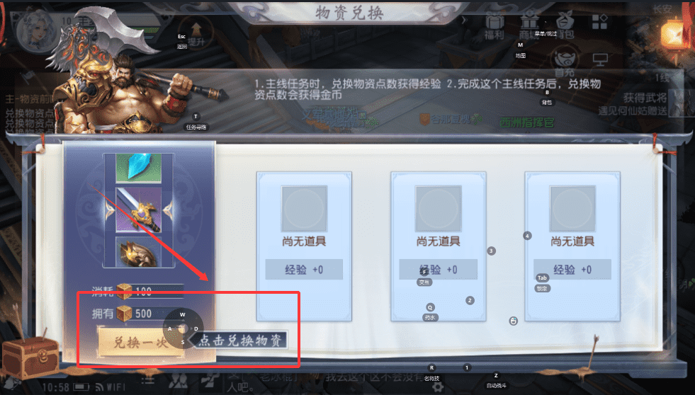 2、在“物资兑换”界面,主线任务期间用点数换经验,任务完成后则换成金币,记得根据你的当前需求来灵活兑换,别浪费了手中的500点数呢。