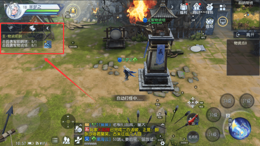 2、你可以手动操作,也可以像图中那样开启“自动打怪”,让角色自己战斗去完成目标。