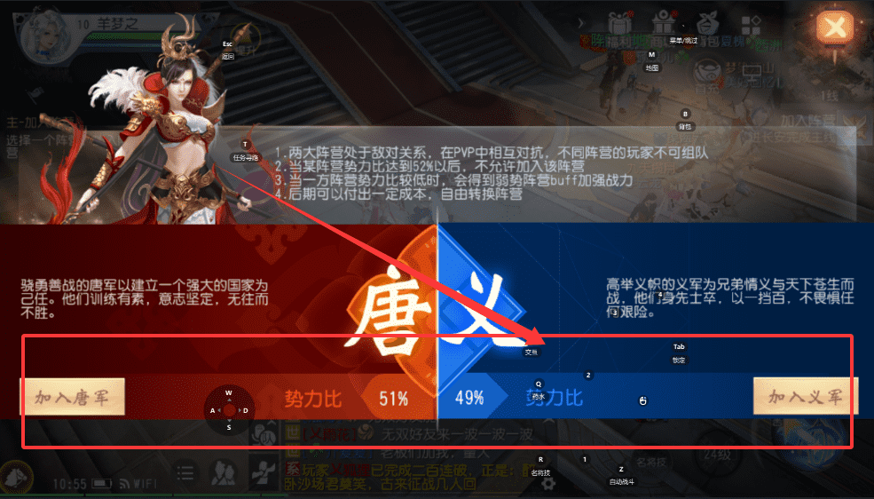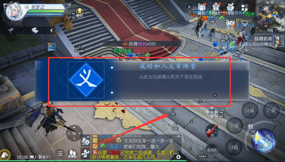 1、选好后,比如像示例中那样成功加入“义军”,就可以为兄弟情义而战啦,系统还会给你相应的奖励。