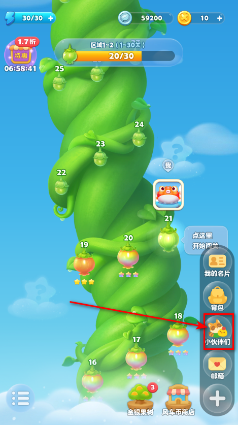 1.首先我们要到20关,然后点击下发的加号。