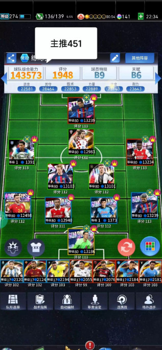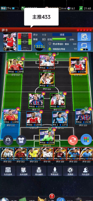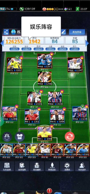 3.娱乐阵容,左边锋内马尔,中锋奥西蒙,右边111格子,门将111斯泽斯尼或者112德赫亚,其他位置没有特别娱乐的,这些属于能用,但是效果一般的。
