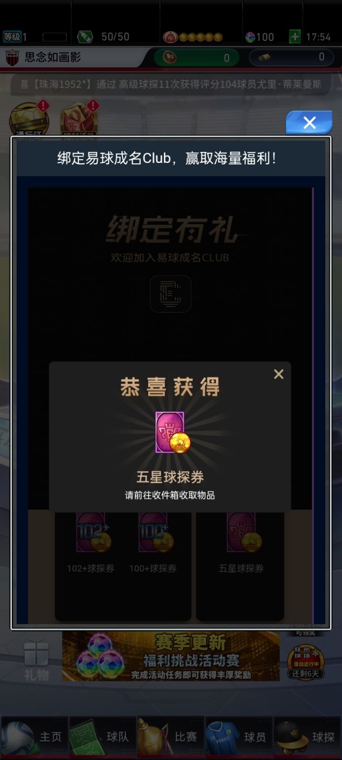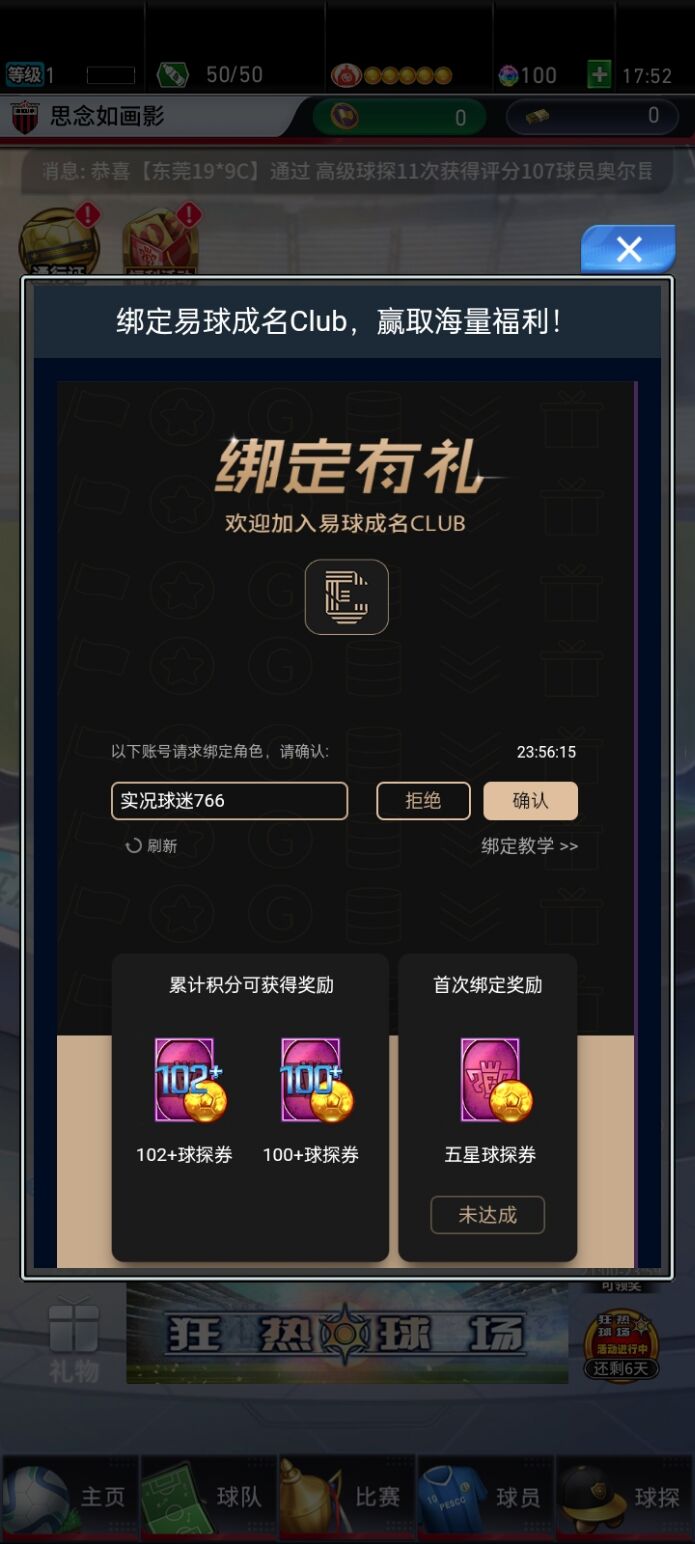 4.之后在前往clubApp确认绑定信息即可,绑定成功可获得五星球探卷。