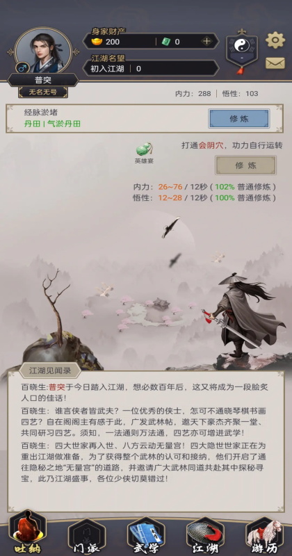 9、修复了部分大侠在已满足自创条件时,却无法自创武学的问题。