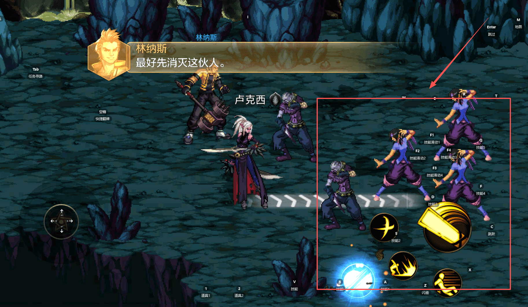 4、遇到多人副本时,比如林纳斯和卢克西同时在场,根据提示“最好先消灭这伙人”。