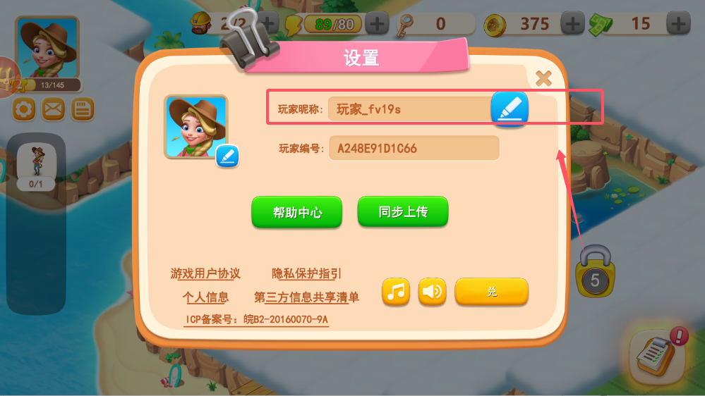 2、进入设置菜单后,找到“玩家昵称”这一栏,点击右侧的编辑图标,系统会弹出一个输入窗口,上面会明确提示“昵称长度请控制在2-6个汉字内”。