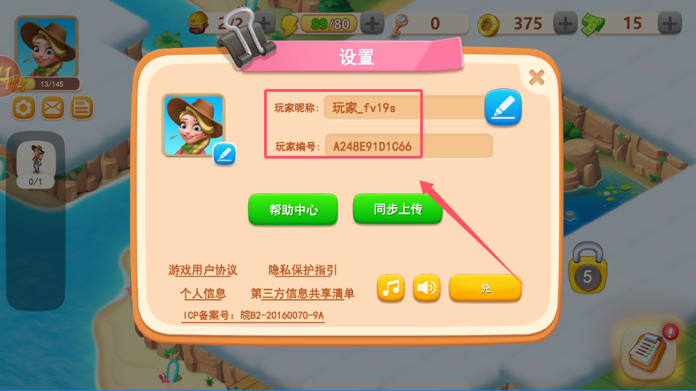 1、在游戏界面中点击左上角的个人信息区域,你会看到目前显示的是默认的玩家编号,如果想要修改成更有个性的名字,那就需要点击下方的设置按钮,进入个人中心进行更改。