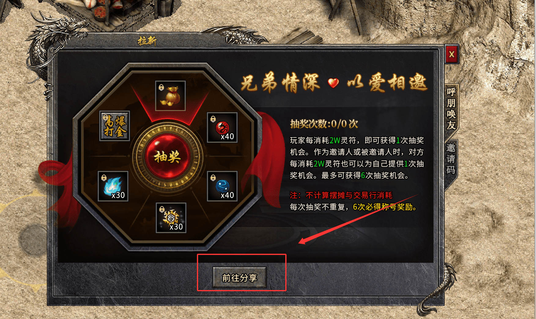 1、想要参与兄弟情深抽奖活动的话,你需要先了解规则。消耗灵符是获得抽奖机会的主要方式。