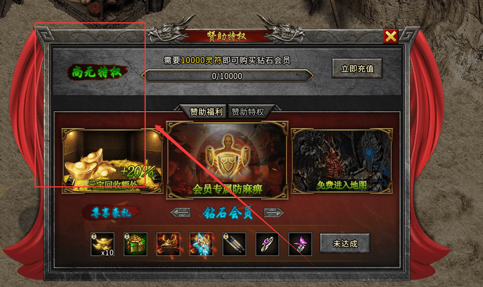 3、关于赞助特权,也就是钻石会员,它的购买门槛是1万灵符。充值达到这个数额后,你可以享受不少福利。