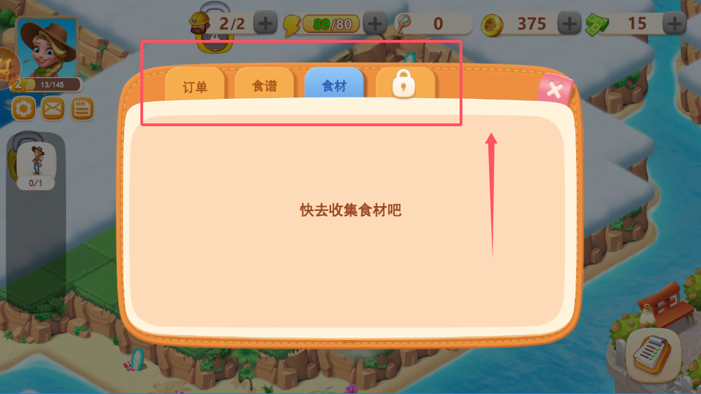 2、重点关注订单系统中的任务要求,完成角色订单可以获得钥匙和金币等奖励,如果当前没有可接订单,你可以先进行食材收集或菜品制作,为后续任务提前做好准备。