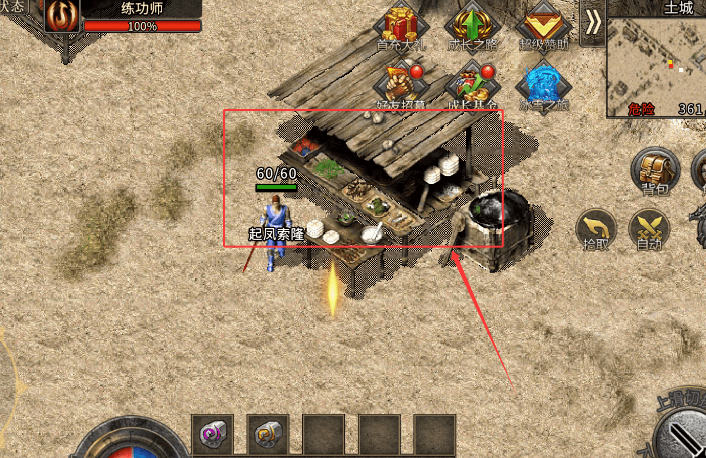 2、前期升级跟着主线走,在土城找到激情泡点NPC,能快速获得经验。