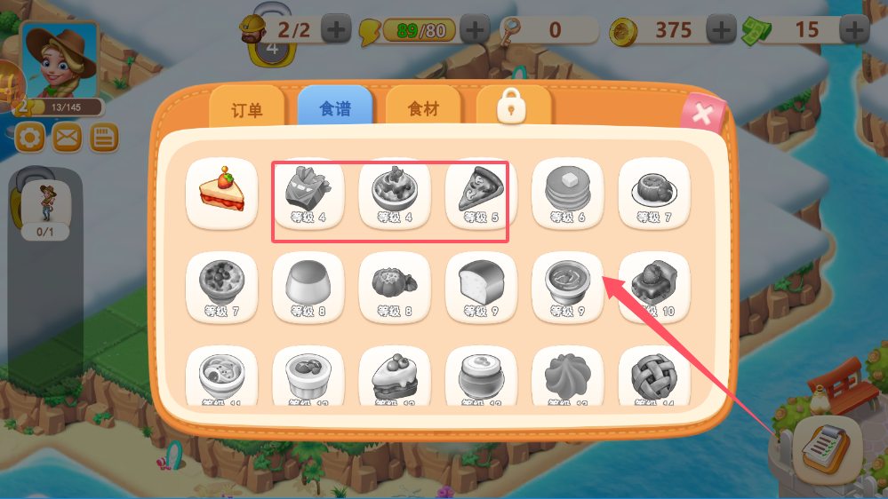 3、食谱系统提供了多种菜品选择,从等级4到等级10的菜品都有不同难度,你可以根据自己的农场等级选择合适的菜品进行制作,成功制作能获得经验和资源提升农场等级。