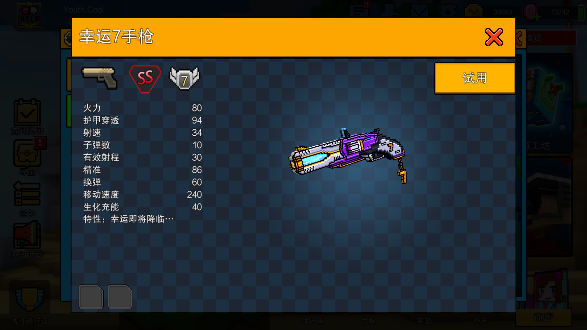 进入正题,今天说一下武器SS级幸运7手枪的特性