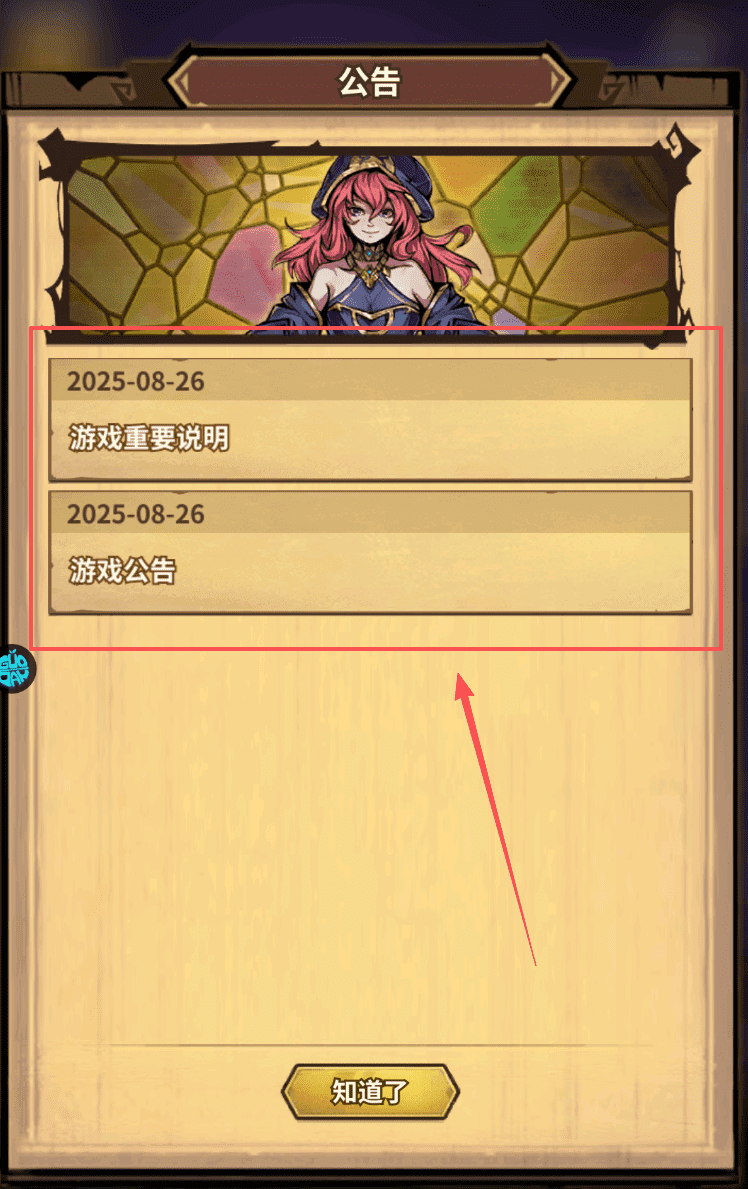 3、进入游戏后啊,很可能会弹出一些游戏公告或重要说明,比如标注日期为2025-08-26的提示。