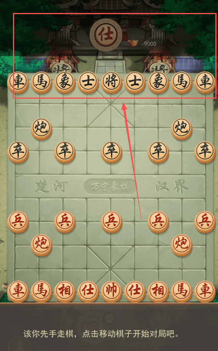 3、进入对局后,棋盘会明确标注楚河汉界与双方棋子,当轮到你先手时,只需点击想要移动的棋子。