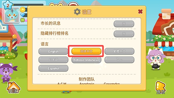 3、进入设置页面后,向下滑动屏幕直到看见语言选项,点击选择简体中文。确认后游戏内的文字和提示就会切换成中文显示。